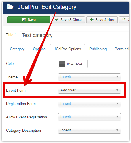 You can't extend the default event form. You have to assign a new form to the category